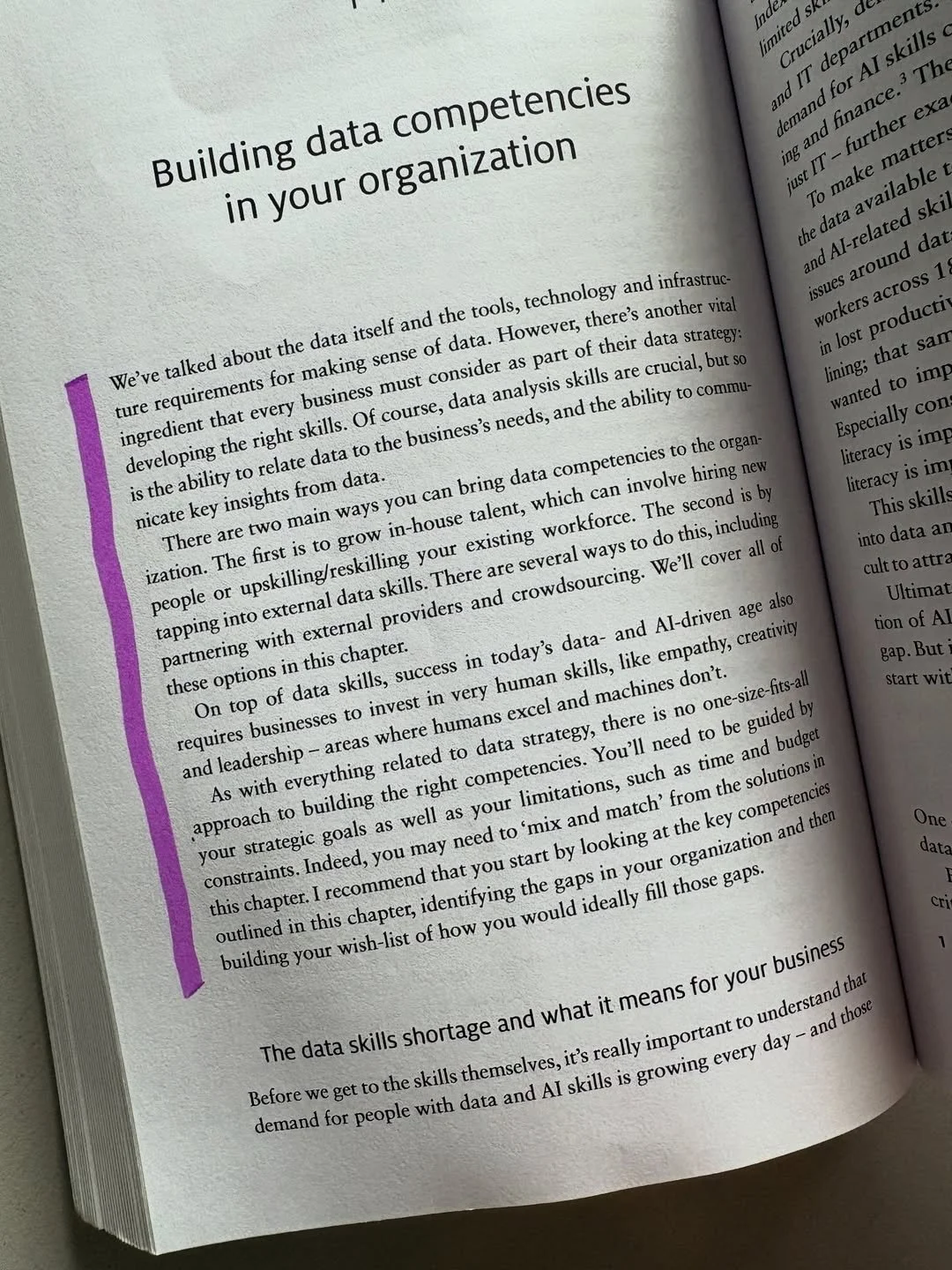L’autore insiste su un punto che molti evitano: la data strategy non è un progetto IT. È un progetto culturale. Servono competenze.Servono architetture. Ma sopratutto: